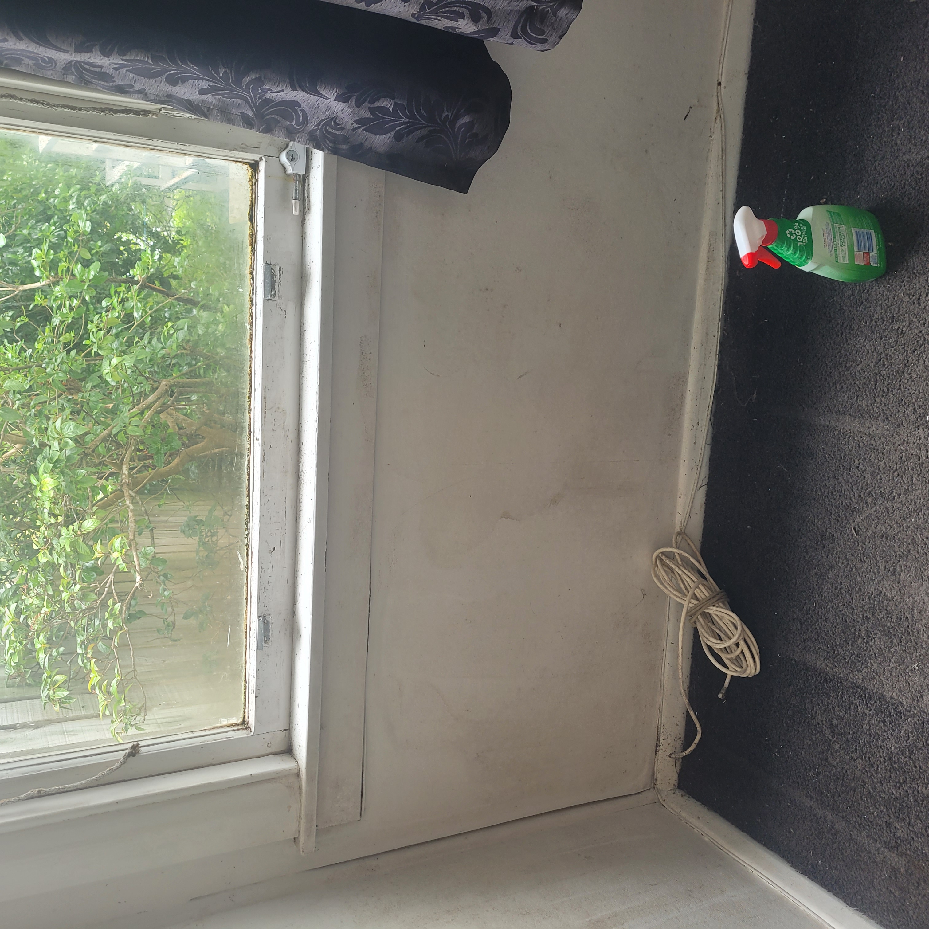 [Photo description: The only part of the room with enough sunlight that my phone camera did the mould justice]